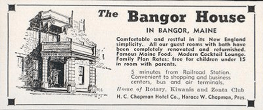 I took a small room in the Bangor House, a splendid old, brick hotel in the tradition of the palace hotels that were once prevalent in this country. I was in good company, with names like Daniel Webster, Ulysses S. Grant, Theodore Roosevelt, Stephen A. Douglas, Oscar Wilde, and John L. Sullivan all having stayed there, and now Marshal Curley Wilcox. I took a brief nap, bathed, and went out for the evening.